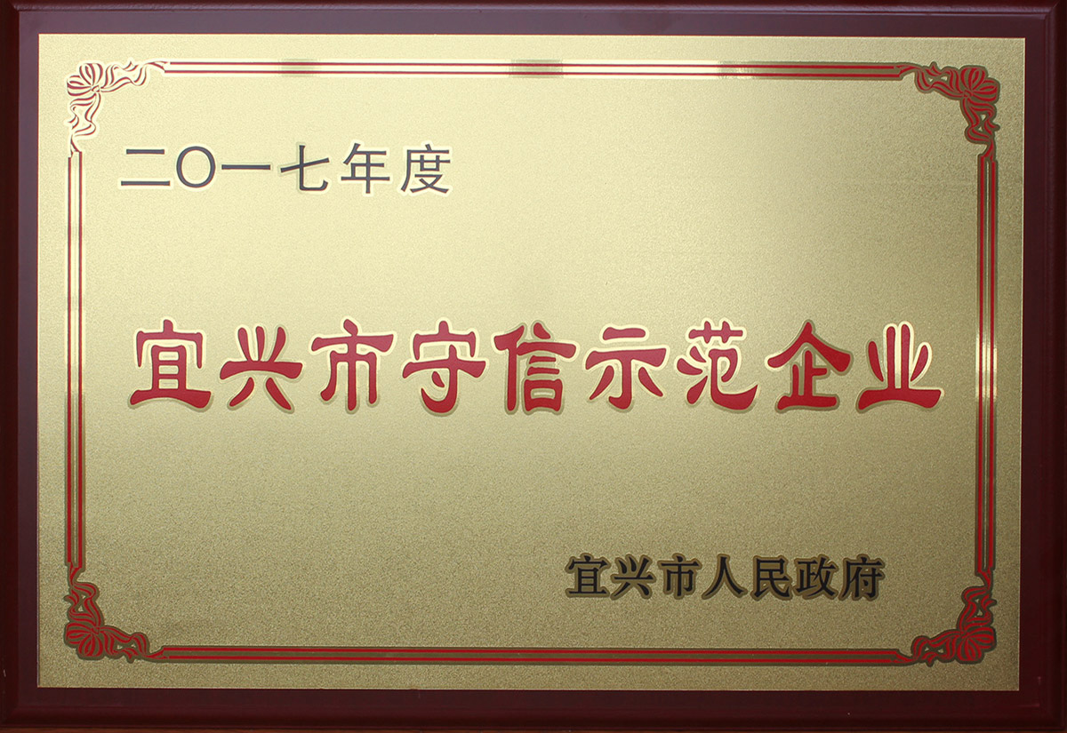 集團公司先后通過了ISO 9001:2015質(zhì)量管理、GBT 24001-2016ISO 環(huán)境管理、中國特種設(shè)備制造許可證。榮獲了“宜興市守信示范企業(yè)”、 “稅收貢獻(xiàn)十強企業(yè)”、“標(biāo)兵企業(yè)家”、“明星企業(yè)”、“江蘇省質(zhì)量服務(wù)誠信AAA級單位”等榮譽稱號。